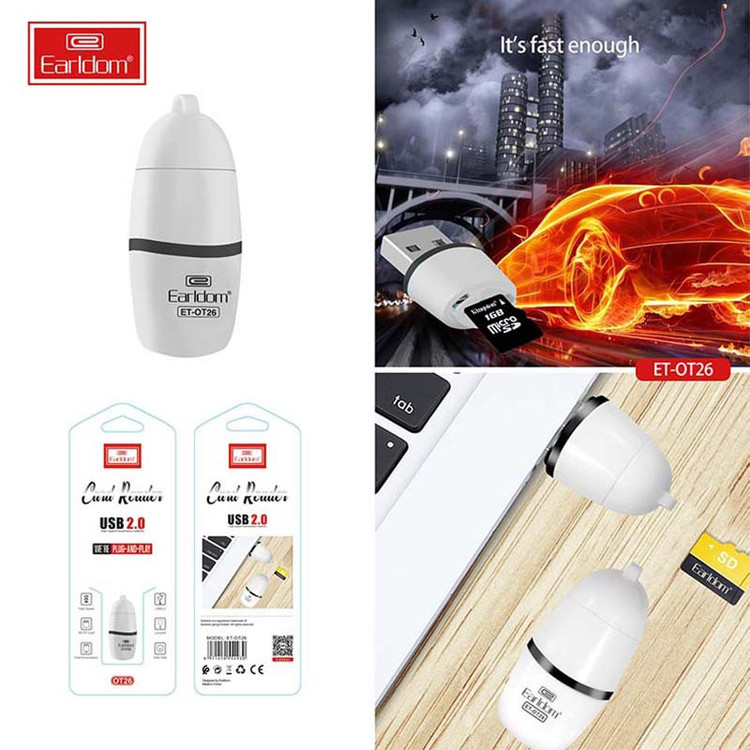 اگر رمی دارید که می خواهید به راحتی به اطلاعات آن دسترسی داشته باشید و بتوانید هر آنچه را که از آن می خواهید به راحتی منتقل کنید، بهترین روش، استفاده از رم ریدر ها می باشد که کار شما را بسیار آسان می کند. با استفاده از رم ریدر Earldom ET-OT26 دیگر حتی کمتر نیازی به فلش مموری پیدا می کنید و می توانید از این وسیله به عنوان فلش نیز استفاده کنید. ایرلدوم زمانی بیشترین کاربرد خود را نشان می دهد که بخواهید اطلاعات درون کارت حافظه موبایل خود را بدون اینکه بخواهید با کابل به سیستم مورد نظر خود اعم از کامپیوتر و… منتقل کنید، تنها با قرار دادن رم به رم ریدر این کار را انجام دهید. هم کانکتور USB و هم پورت رم در این محصول دارای درگاه هستند؛ پورت رم درگاهی دارد که به صورتی طراحی شده که انگار قفل می شود و شما باید برای باز کردن آن، درب را بچرخانید و سپس از ET-OT26 استفاده کنید.