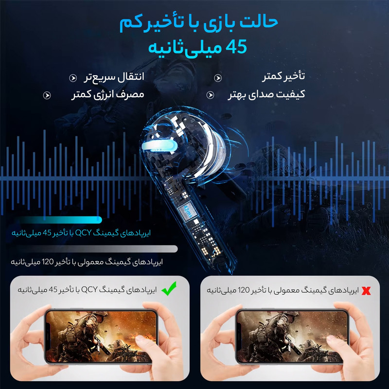 مدت زمان استفاده در حالت بازی: 6 ساعت قابلیت 45ms of Low Latency نورپردازی BLUE LED دارای قابلیت شارژ وایرلس کیس