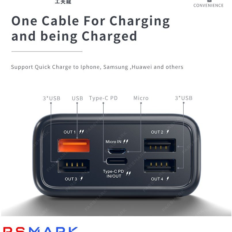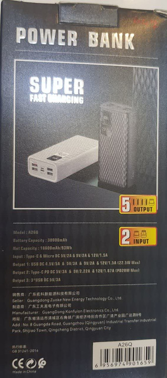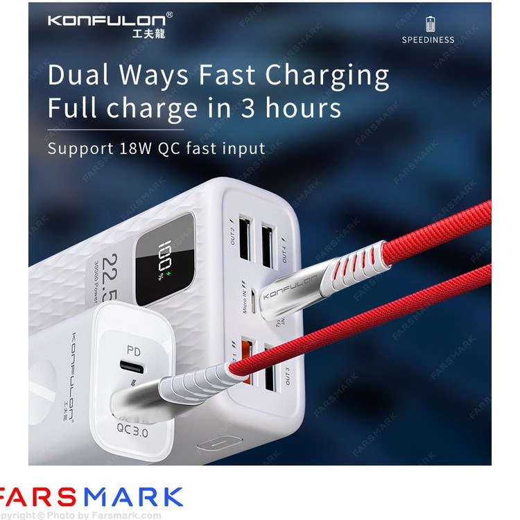 پاوربانک سوپر فست 30هزار 30000 میلی آمپر فست و سوپر فست توان 22.5 وات ظرفیت بالا