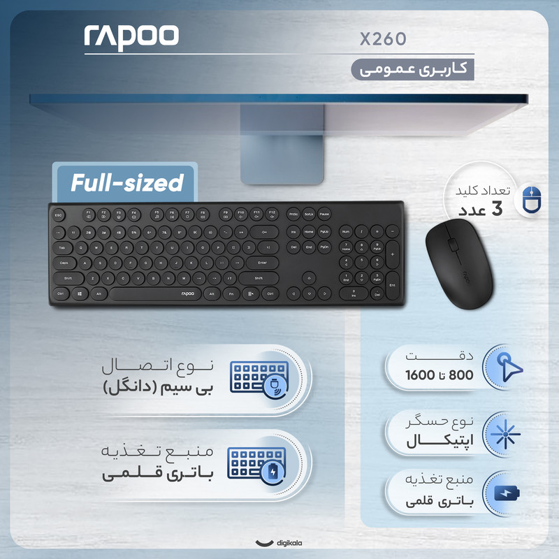 کیبورد و موس بی سیم رپو مدل X260، سوییچ ممبران، Full-Size