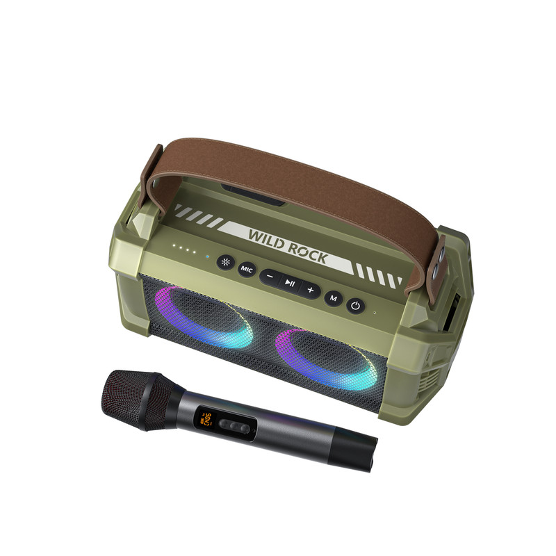 حفره آکوستیک بزرگ آن با دو عدد اسپیکر با دیافراگم 76 میلیمتری ترکیبی تجهیز شده است. دو عدد دیافراگم آلومینیومی 90 میلیمتری آن بیس قوی تولید میکند که در مجموع شاهد تولید صدایی قدرتمند هستیم. قابلیت نمایش طیف نوری با 16.8 میلیون رنگ را دارد. دارای یک میکروفن بیسیم با صدای کیفیت بالا و فیلترینگ نویز است. این دستگاه از اتصال دو میکروفن پشتیبانی میکند که خروجی آن صدای بیسیم کارائوکه است. هم چنین امکان تنظیم بازگشت صدا(reverb) هم وجود دارد. در محدوده دمای 20- تا 45+ درجه قابل استفاده است. با داشتن بلوتوث 5.0 سریع، پایدار ، با سازگاری بالاست و به آسانی وصل میشود. با طراحی درشت و سخت خود مناسب محیط جنگل و سفر است. بند چرمی آن به راحتی حمل دستگاه کمک میکند. قابلیت پخش فایلهای صوتی با فرمت MP3, WMA, WAV, FLAC,APE را از روی کارت حافظه دارد. باتریهای لیتیوم آن با ظرفیت کلی x2(3.7V/4500mAh) تا 13 ساعت عمر شارژ باتری دارد. باتری آن با آداپتور 5V/3A ظرف حدود 4.5 ساعت شارژ میشود.