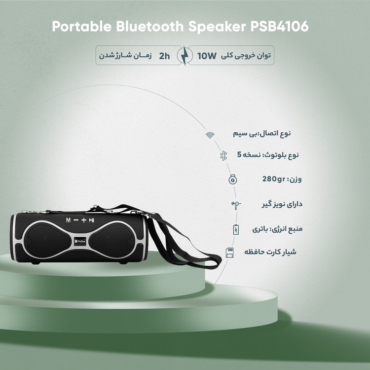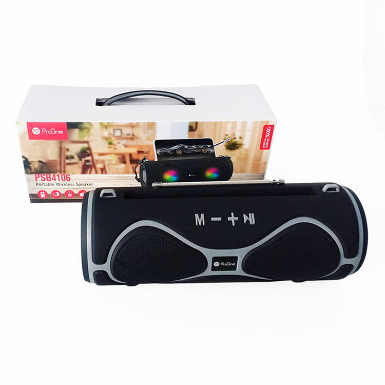 همیشه جای یک موسیقی در مهمانی و دورهمیهای دوستانه خالی است به همین دلیل اکثریت افراد با خرید اسپیکرهای بلوتوثی قابل حمل کار خود را راحت میکند تا همیشه موسیقی در هر محفلی پابرجا باشد. همچنین با افزایش علاقه مصرف کنندگان به کالاهای صوتی، اسپیکرها با مدلها و قابلیتهای متنوعی تولید شدهاند. برند پرووان، یکی از پیشتازان تولید لوازم جانبی دیجیتال، با بررسی نیاز مردم نسبت به طراحی و تولید اسپیکر قابل حمل PSB4106 اقدام کرده است. این اسپیکر با ابعادی معادل طول 230، عرض 84 و ارتفاع 89 میلی متر طراحی و تولید شده است که خود اسپیکر وزنی معادل 600 گرم دارد. در قسمت بالای اسپیکر PSB4106 یک پنل کاربردی جهت قطع و وصل کردن، عقب و جلو زدن موسیقی و تغییر حالات پخش قرار دارد. در این اسپیکر محفظههای پورتهای اتصال، شارژ اسپیکر و دکمه روشن و خاموش قرار دارد. همچنین در بالای این اسپیکر یک جای مخصوص برای گوشی اختصاص داده شده تا به راحتی گوشی خود را در آنجا قرار دهید. این اسپیکر دارای رقص نور است که همزمان با پخش موزیک میتوانید از آن استفاده کنید.