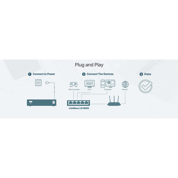 یکی از محصولات برندِ تی پی لینک (TP-LINK) سوئیچ غیر مدیریتیِ TL-LS1005G می باشد که با 5 پورت با سرعت 10/100/1000 مگابیت بر ثانیه؛ امکان تبادل پیوسته اطلاعات (دیتا) را بین چند دستگاه متصل به یک شبکه محلی (LAN) فراهم می سازد. از ویژگی های TL-LS1005G، می توان به پشتیبانی از استاندارد های IEEE 802.3u/3x/3ab/3i، صرفه جویی در مصرف انرژی به کمک فناوری Green Ethernet، ظرفیت 10Gbps، جدول مک آدرس 2K و قابلیت استفاده بدون نیاز به تنظیمات (Plug and Play) اشاره کرد. سوییچ 5 پورت گیگابیتی و دسکتاپ تی پی-لینک مدل LS1005G میتواند سرعت و کارایی را در شبکههای کوچک یا خانگی یا شرکتهایی با افراد کم برای شما به ارمغان بیاورد.